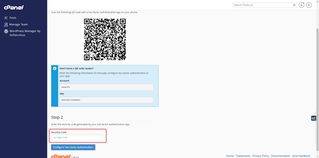 Sau khi kích hoạt 2FA, bạn sẽ cần cung cấp mã xác thực từ ứng dụng của mình bên cạnh tên người dùng và mật khẩu khi đăng nhập vào cPanel.