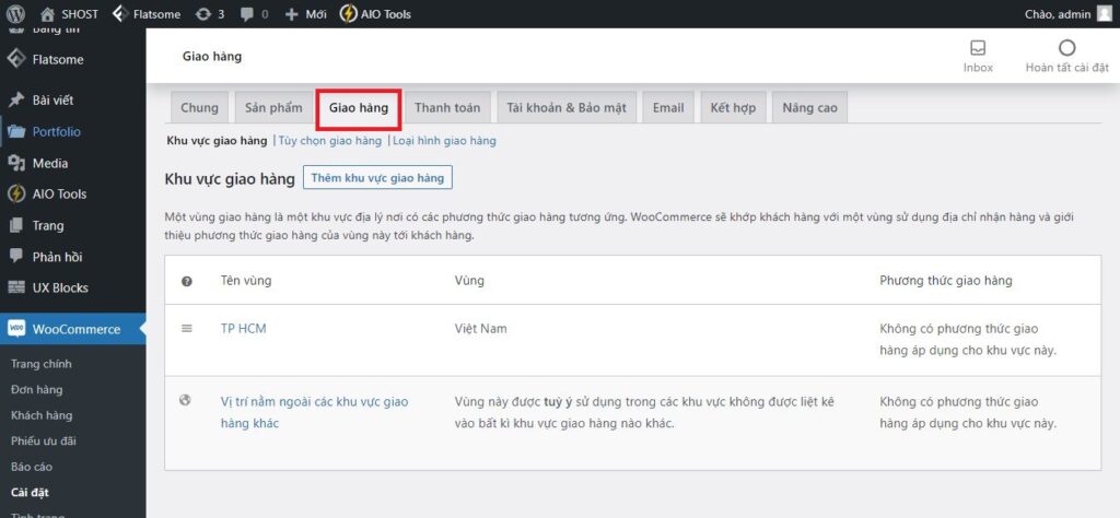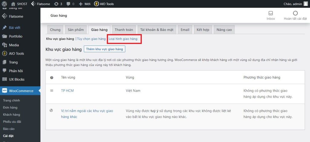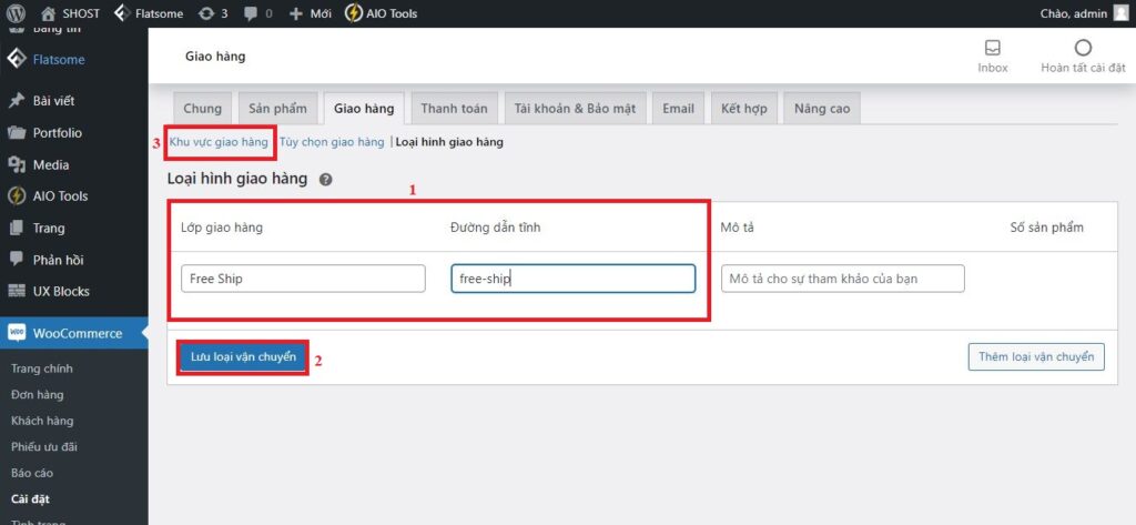 Bước 5: Lúc này, bạn có thể tạo một Lớp giao hàng bằng cách điền các thông tin được yêu cầu. Sau khi hoàn tất tất cả các thông tin trong biểu mẫu, hãy nhấn vào nút Lưu loại vận chuyển để lưu lại. Sau đó, chuyển đến Khu vực giao hàng.