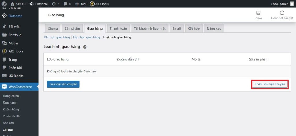 Bước 4: Ở góc dưới bên phải, bạn sẽ thấy nút Thêm loại vận chuyển. Nhấn vào đó để bổ sung loại vận chuyển mới.