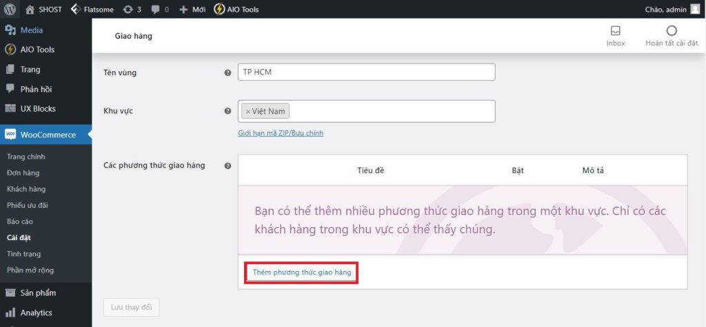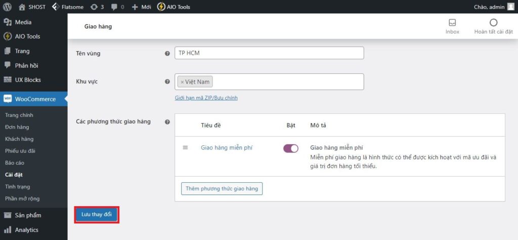 Bước 9: Sau khi phương thức giao hàng đã được thêm vào, nhấn Lưu thay đổi để xác nhận và kích hoạt nó.