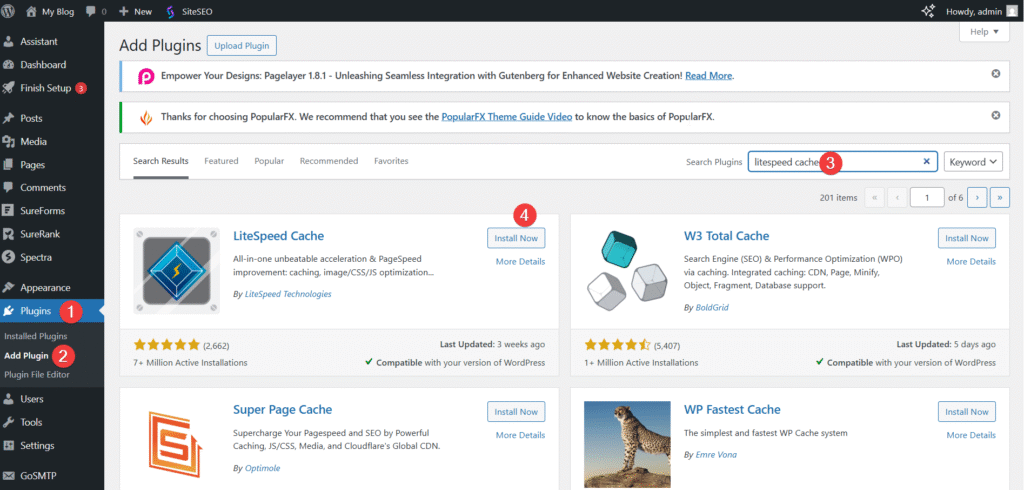 - Cài đặt plugin LiteSpeed Cache.