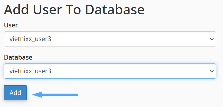 Bước 5: Tại phần Add User To Database, quý khách nhấn Add để thêm User vào quản lý Database.