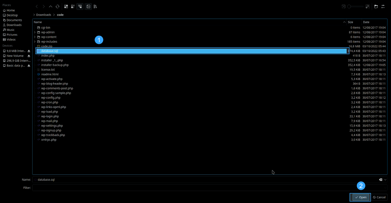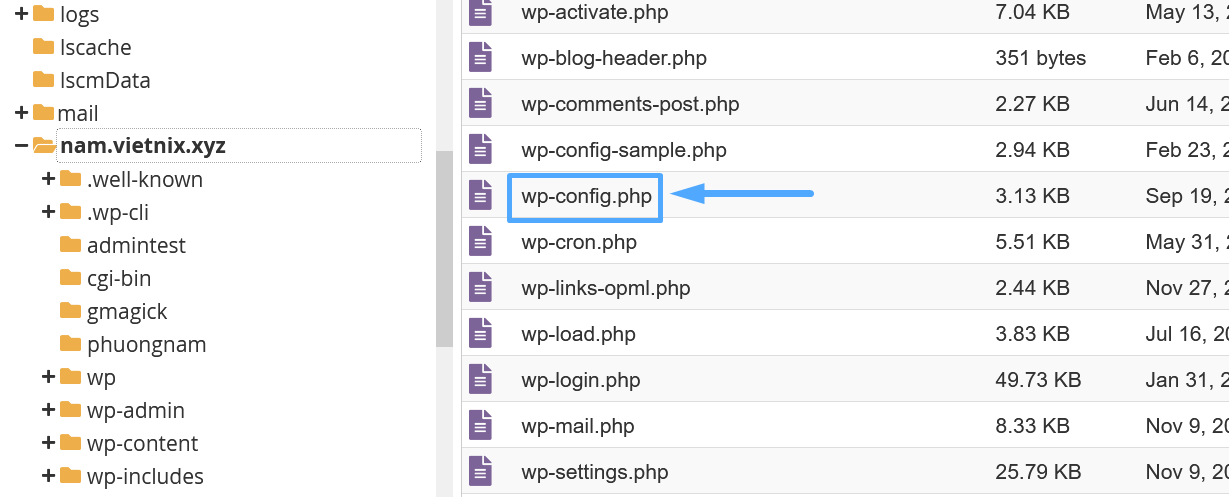 File cấu hình sẽ có tên gọi và vị trí khác nhau tùy thuộc vào từng loại mã nguồn. Trong bài viết này, source sử dụng là WordPress và file cấu hình có tên wp-config.php.