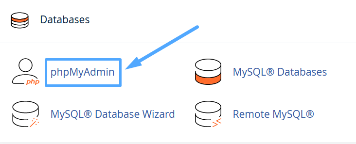 - Tại giao diện cPanel, tìm tới mục DATABASES > chọn phpMyAdmin.