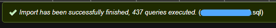 - Import database thành công sẽ hiển thị như hình bên dưới.