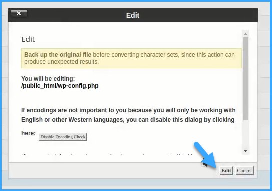 Tại thư mục public_html, chọn wp-config.php > chọn Edit.