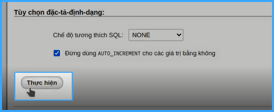 - Chọn Thực hiện để tiến hành import database lên hosting.