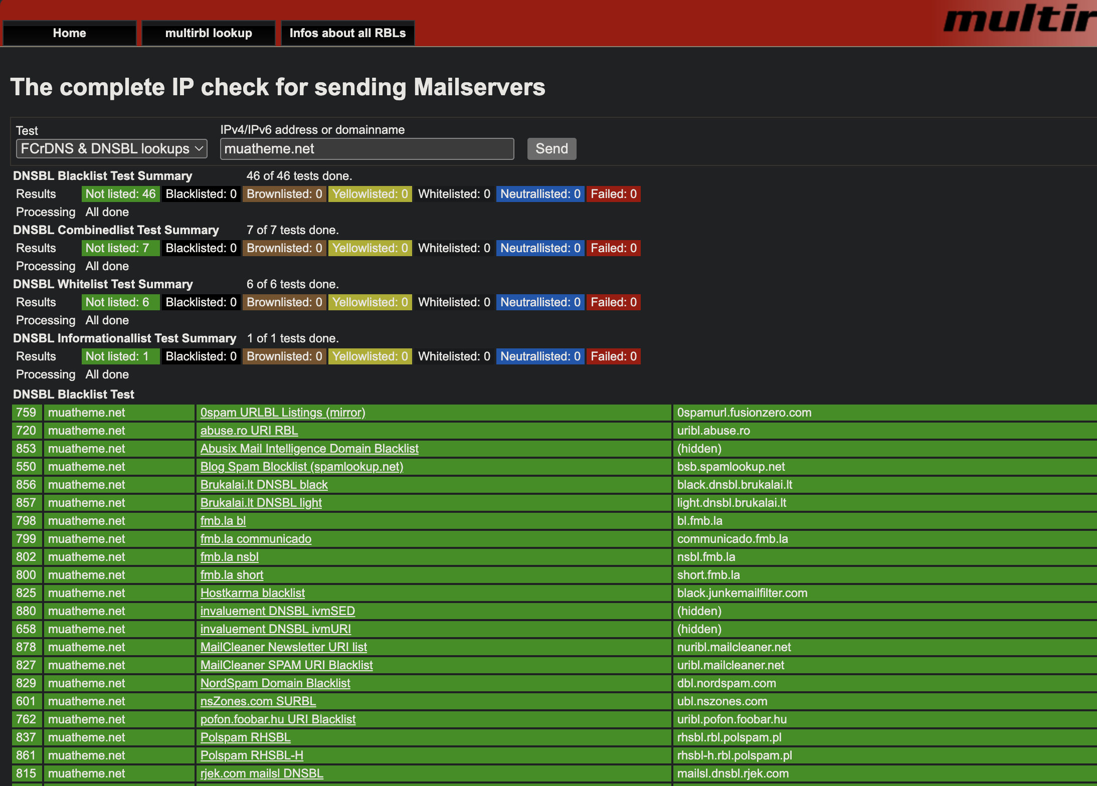 - Truy cập vào Multirbl và nhập thông tin tên miền hoặc IP để kiểm tra mức độ an toàn.